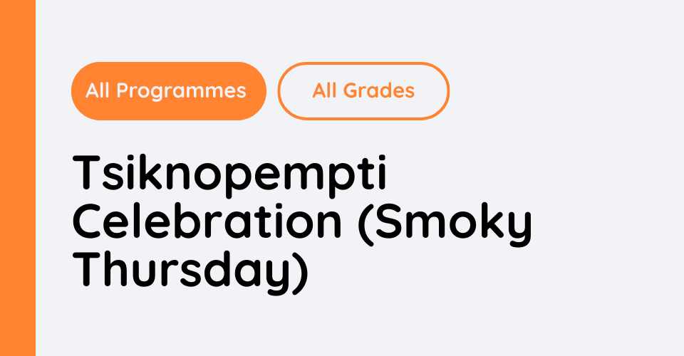 We are happy to invite you to celebrate Tsiknopempti on 12 February — a traditional Cypriot day of grilling, food, and dance performances hosted by school.